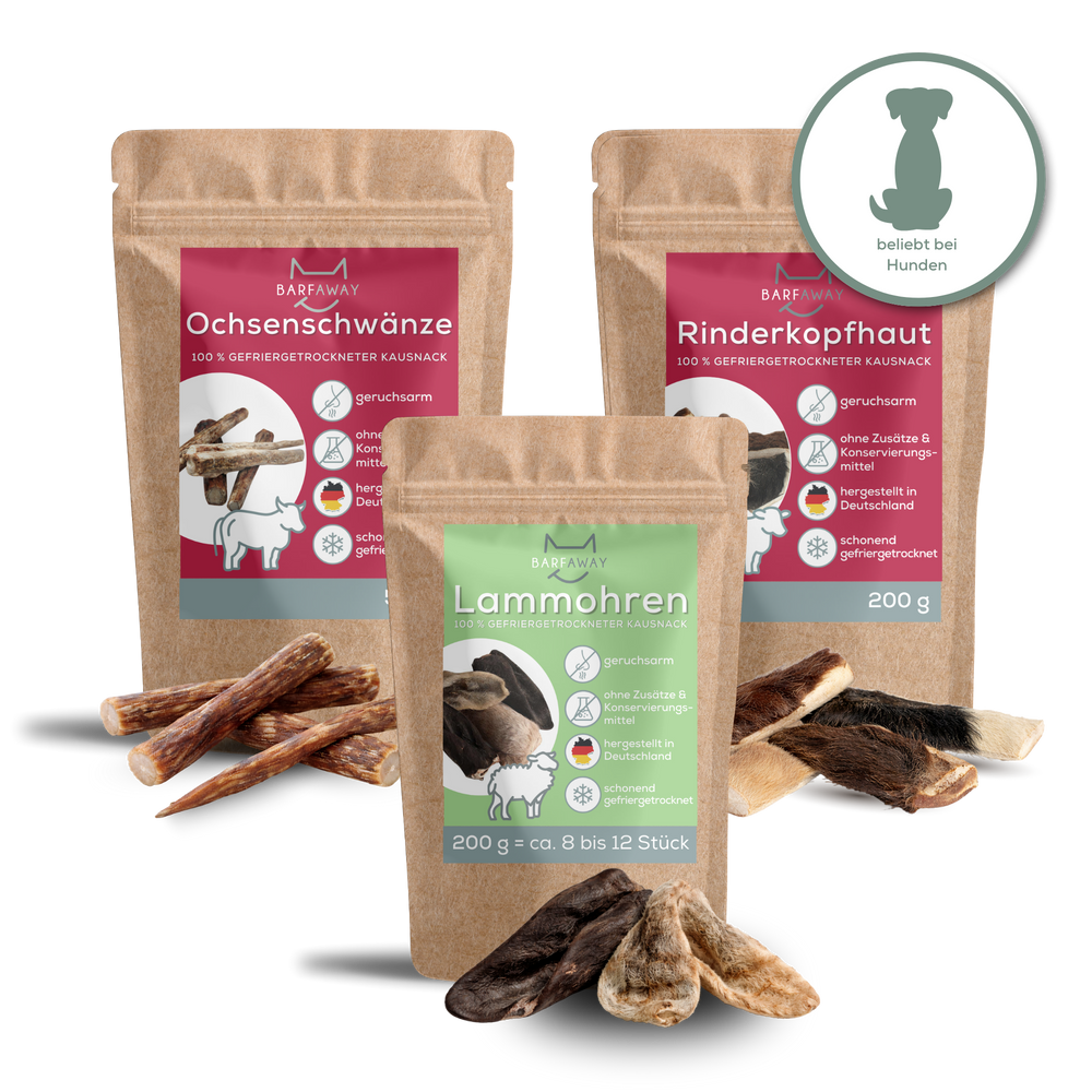 Gefriergetrocknete Produkte von BARFaway sind besonders schonend verarbeitet, um wertvolle Nährstoffe und den vollen Geschmack zu erhalten. Sie eignen sich ideal für eine artgerechte und gesunde Hundeernährung. Egal ob du Leckerlis für zwischendurch oder Futterergänzungen für die tägliche Ration suchst – bei BARFaway wirst du fündig.